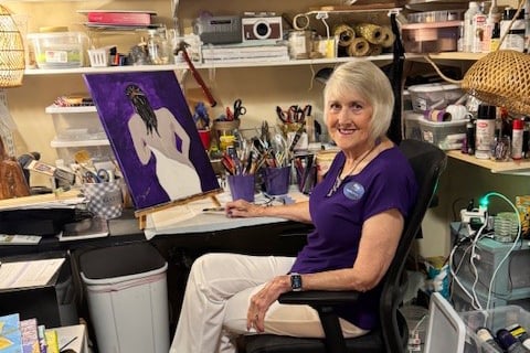 Recently, Lead Senior Living Advisor, Rebecca Slough, sat down with Alto Tavares resident Marti Stinson to hear her remarkable life story and how art has been a constant companion since childhood.As a little girl, Marti often found comfort and escape in drawing, sketching behind the couch to soothe the challenges of her family life. By the age of eight, she had begun adding color to her creations, mostly paper dolls, which soon blossomed into landscapes and other scenes.